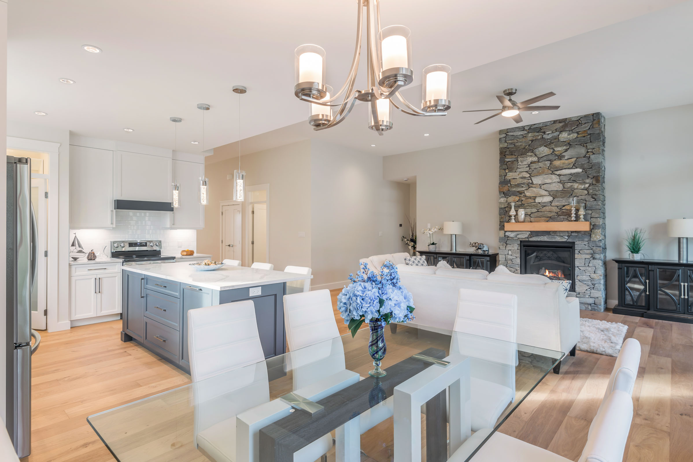- Open floor plan with a gorgeous chandelier