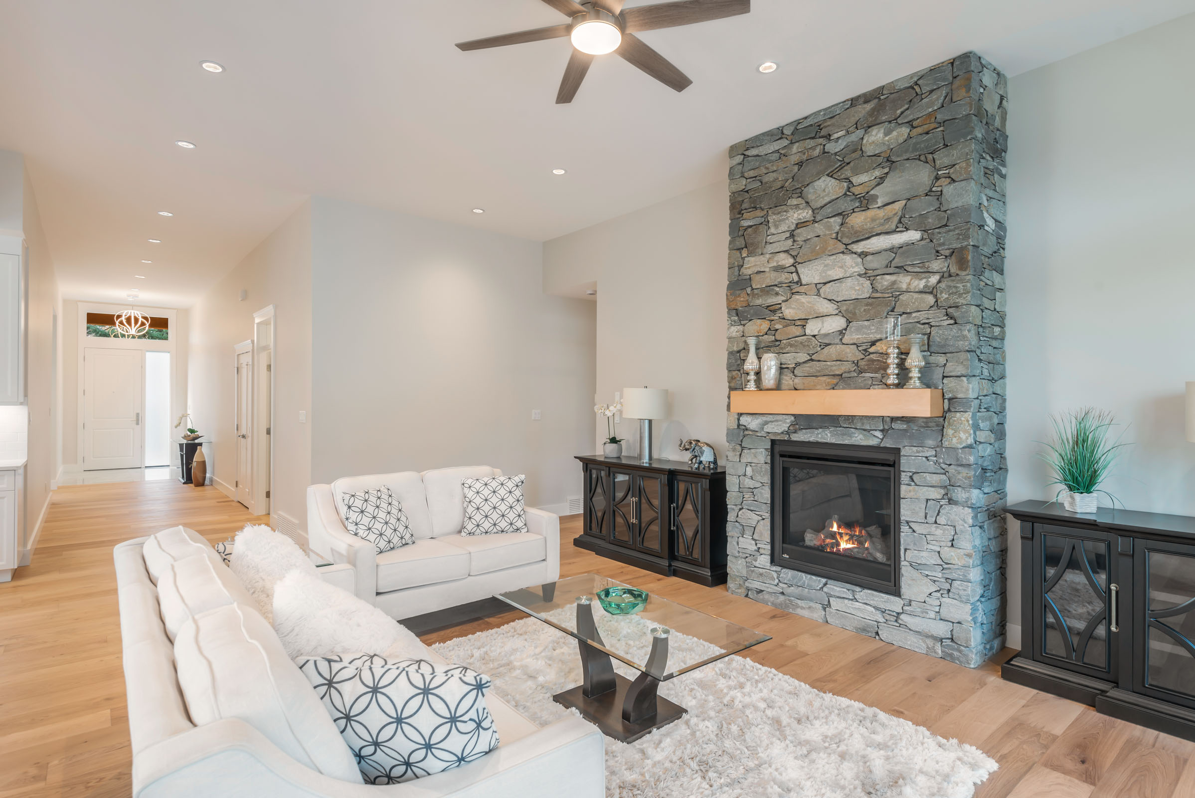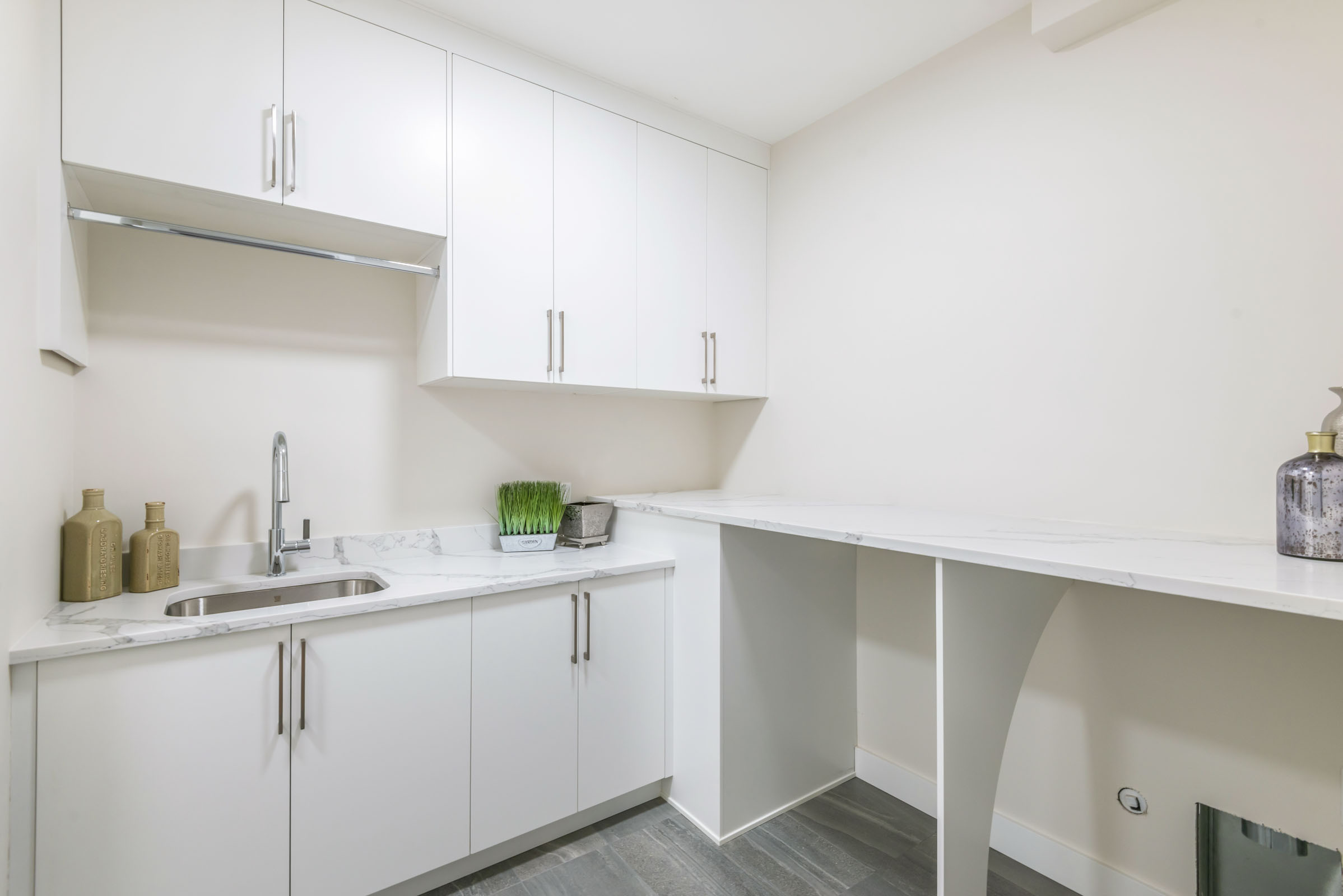 - Custom cabinetry with soft close drawers and quartz countertops