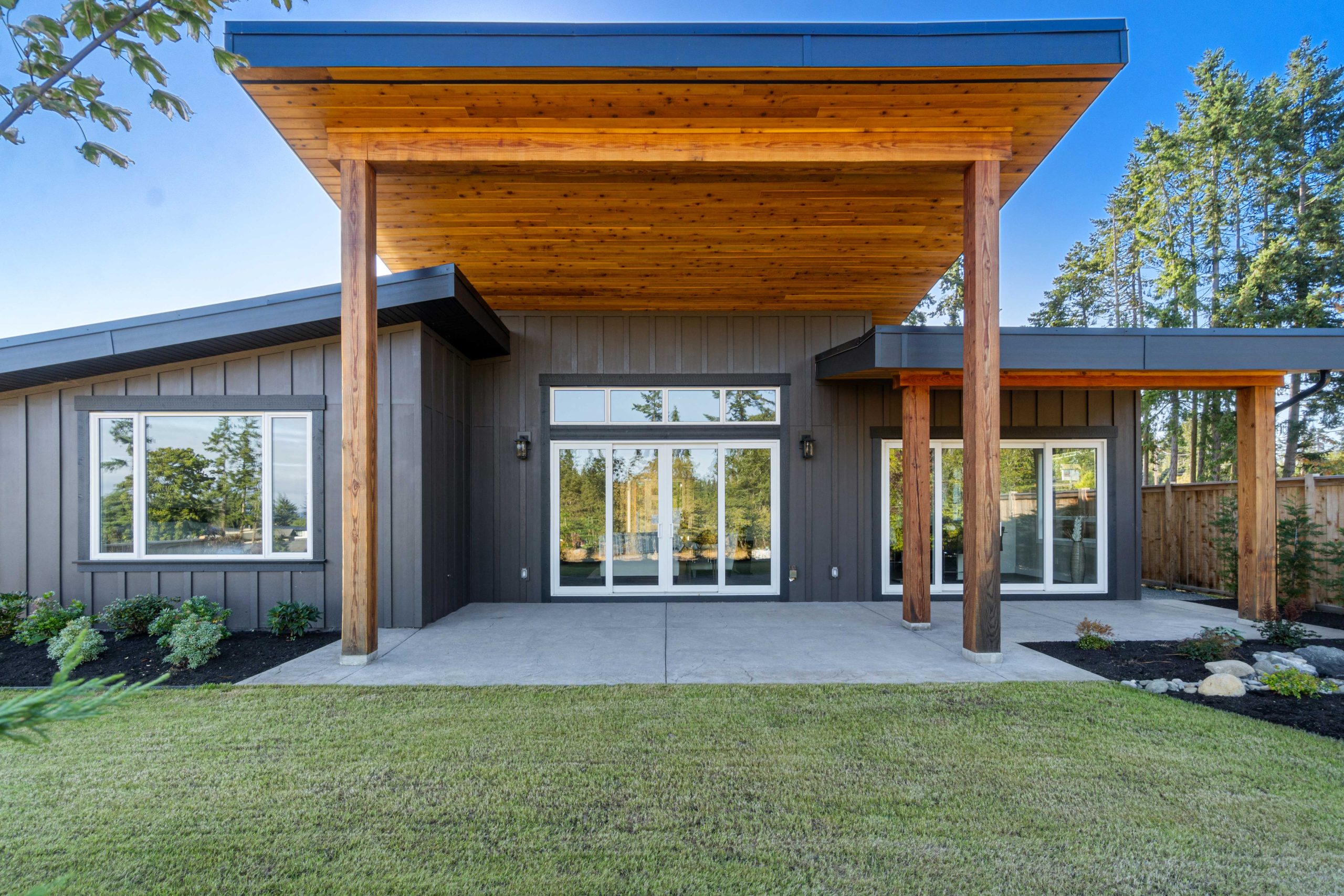 Welcome to Bayview Estates Ideally situated on a pristine sandy bay between Parksville and Qualicum Beach—just moments from the French Creek Marina—this modern contemporary show home captures the essence of West Coast luxury living. Expertly crafted with clean architectural lines and upscale finishes, this 3-bedroom, 2-bathroom plus den residence features soaring ceilings and a spacious open-concept layout designed for both relaxed living and elegant entertaining. The gourmet kitchen is a chef’s dream, complete with quartz countertops, a large central island, custom cabinetry, a hidden oversized pantry, and a state-of-the-art JennAir gas cooktop. From the moment you enter, you’re greeted by marble tile in the grand foyer and a stunning water feature, all framed by exquisite professional landscaping that elevates curb appeal to the next level. Unwind or entertain in style on the covered stamped concrete patio while enjoying sweeping views of the inlet. GST not included.